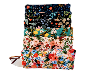 Five colorful, floral Kindle Sleeves to hold and protect Kindles. Made with Rifle Paper Co. fabric.